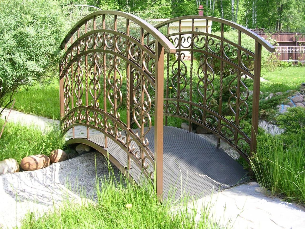 В дизайне ландшафта современного сада или усадьбы незаменимой деталью является наличие изысканного кованого мостика. Наша компания занимается профессиональным производством таковых. Мы предлагаем Вам великолепные кованые мосты и мостики художественной ковки. Они безупречно впишутся в композицию вашего приусадебного участка, потому как мы соблюдаем все тонкости кузнечного мастерства при их создании и обработке. Садовая мебель нашего исполнения обеспечит комфорт и уют во время Ваших прогулок на свежем воздухе.