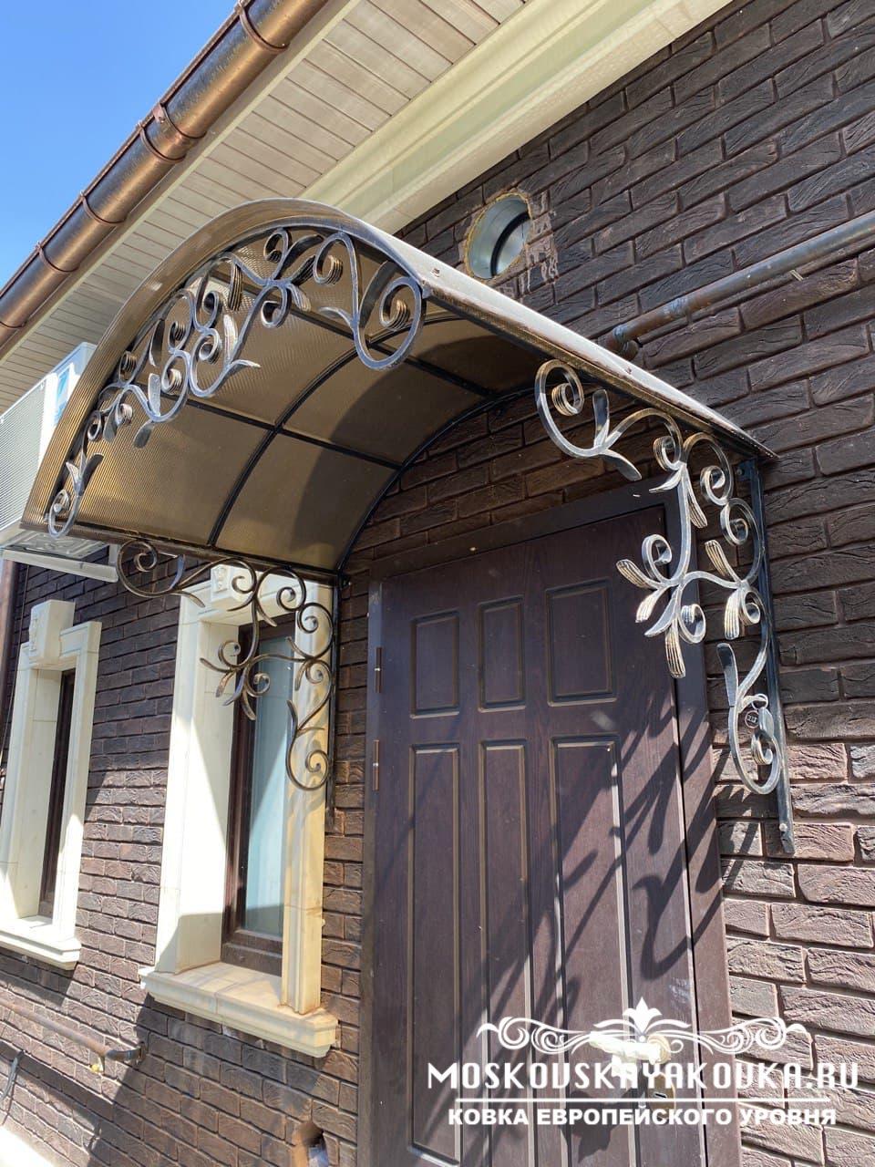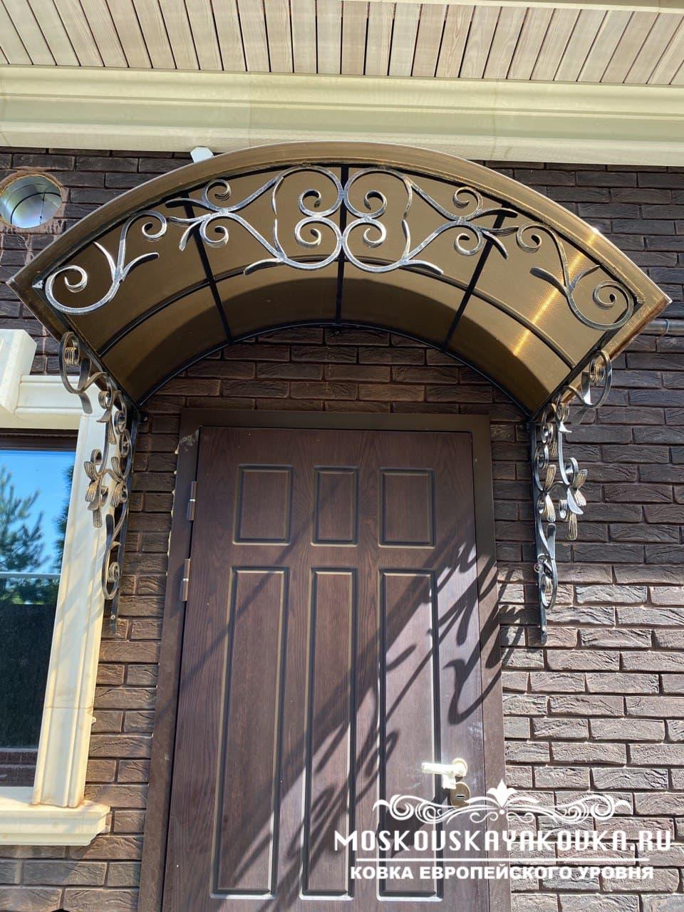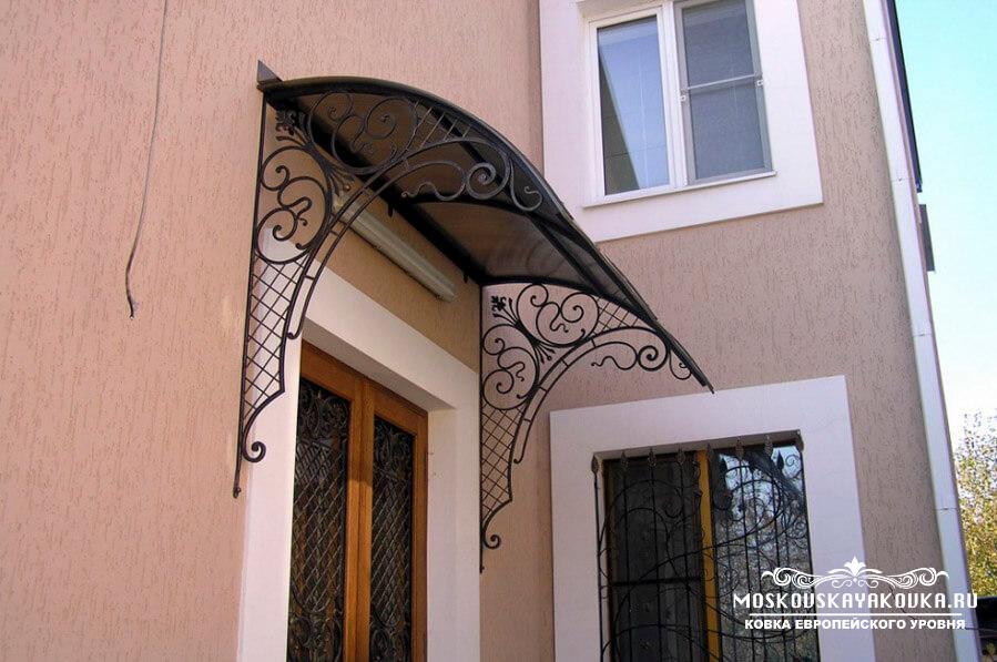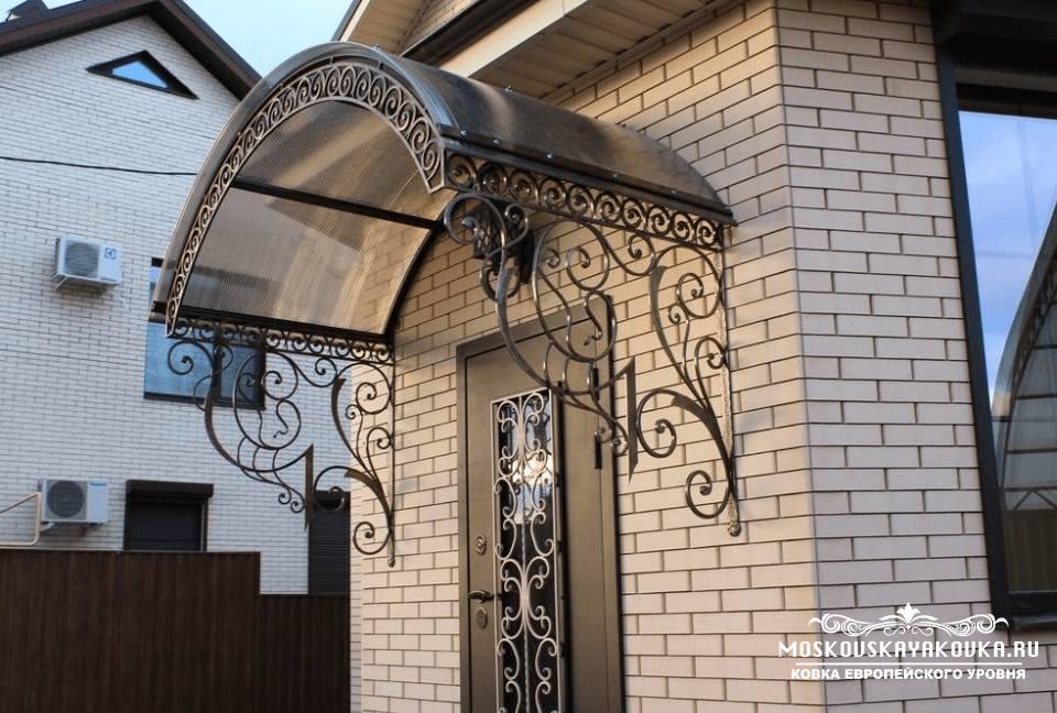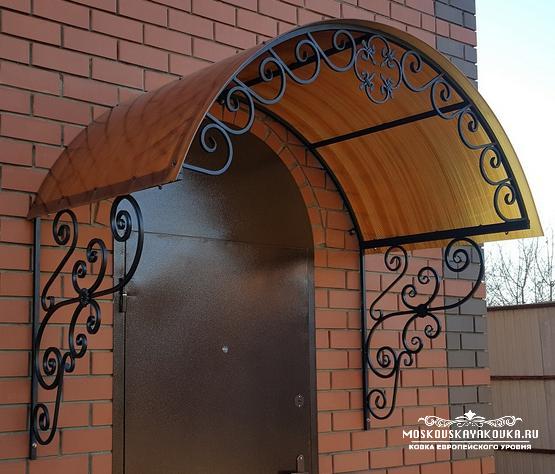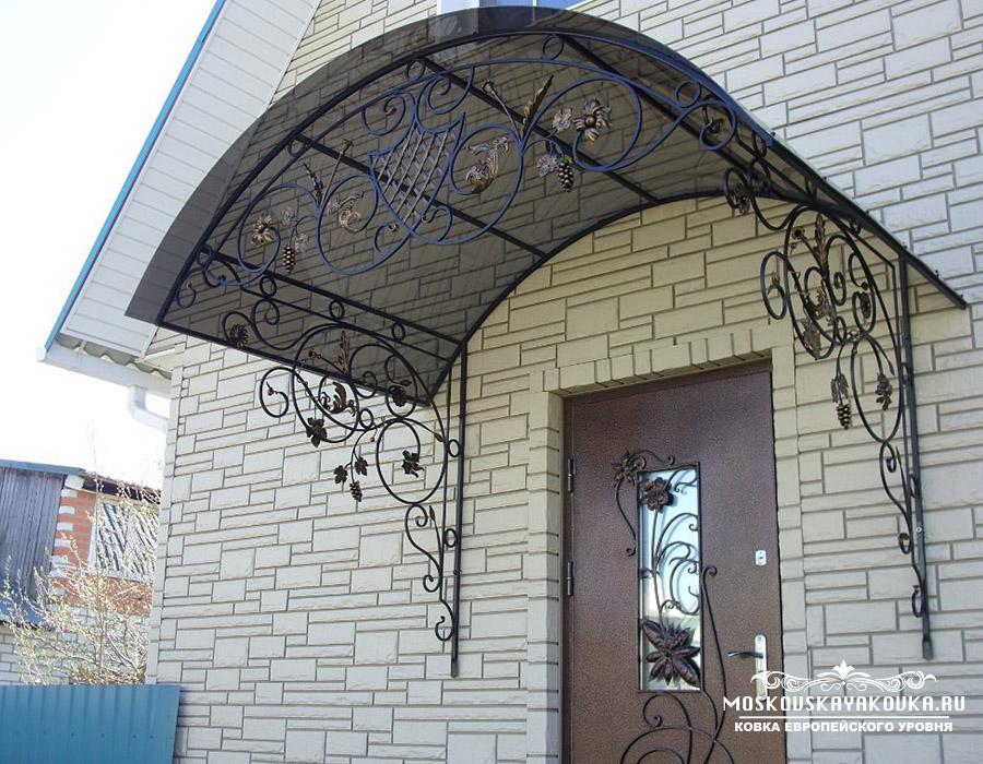 Стиль и рисунок, который украсит Ваше будущее изделие, Вы можете выбрать в нашем каталоге или придумать его самостоятельно, получив в итоге оригинальное изделие. Наценки на изготовление изделия по Вашему эскизу мы не делаем. Мастерство наших кузнецов и современные технологии производства позволяют делать высококачественные изделия различного уровня сложности в сжатые сроки. Поликарбонат, который мы используем для покрытия кованого козырька, делает его достаточно легким, при этом сохраняется внешний вид и защитная функция конструкции. Экстерьер Вашего дома будет дополнен эстетическим, статусным элементом, который много сможет рассказать о вкусе хозяина.