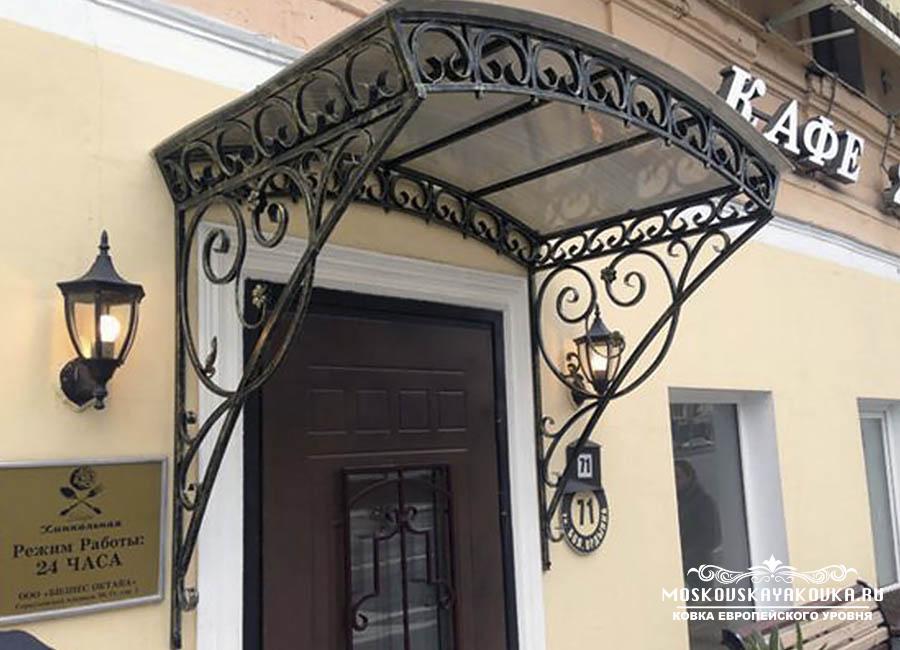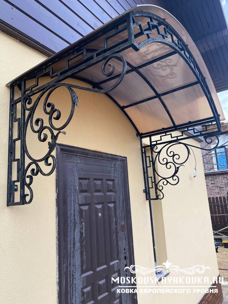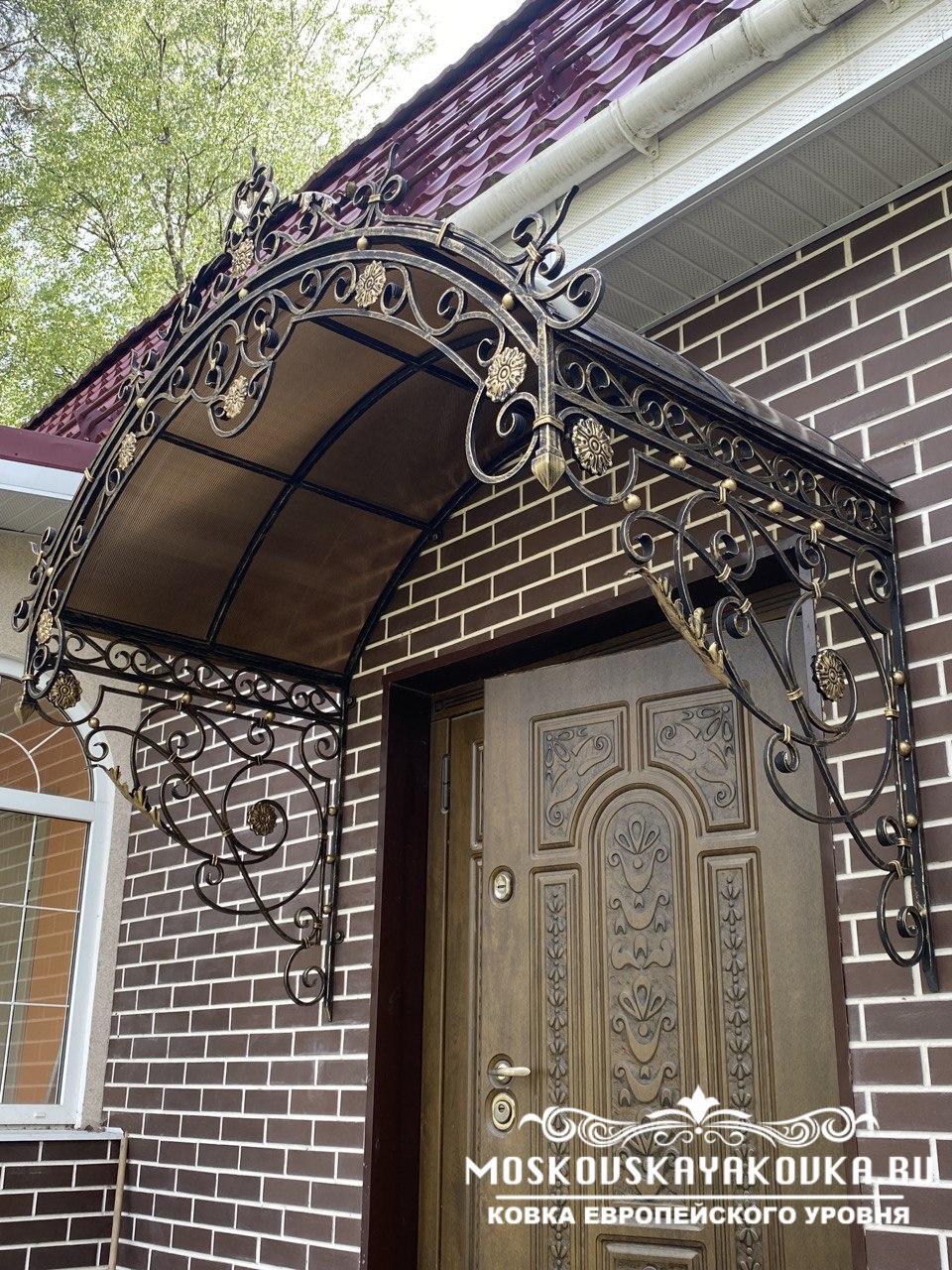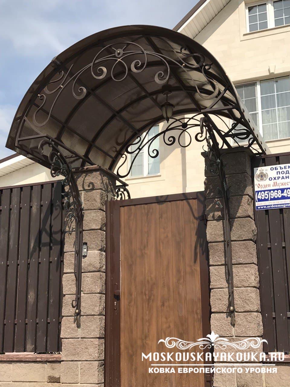 Стиль и рисунок, который украсит Ваше будущее изделие, Вы можете выбрать в нашем каталоге или придумать его самостоятельно, получив в итоге оригинальное изделие. Наценки на изготовление изделия по Вашему эскизу мы не делаем. Мастерство наших кузнецов и современные технологии производства позволяют делать высококачественные изделия различного уровня сложности в сжатые сроки. Поликарбонат, который мы используем для покрытия кованого козырька, делает его достаточно легким, при этом сохраняется внешний вид и защитная функция конструкции. Экстерьер Вашего дома будет дополнен эстетическим, статусным элементом, который много сможет рассказать о вкусе хозяина.